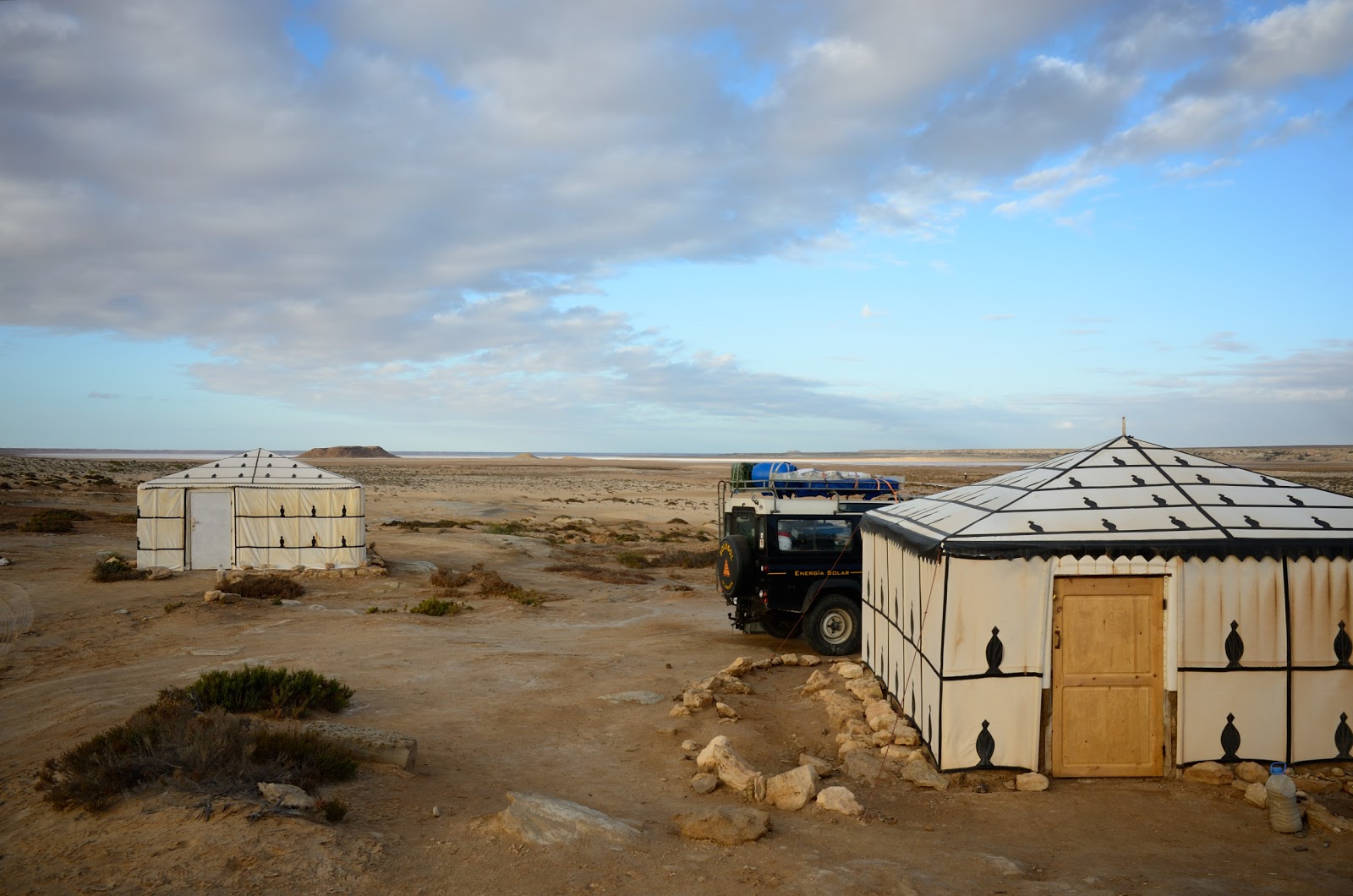 Cette nuit, nous dormons à l'entrée du Sahara dans une tente bédouine face au lac salé et des mines de sel de Oum Dba, le paysage est tout simplement magique. Au menu nous avons un tajine de dromadaire.